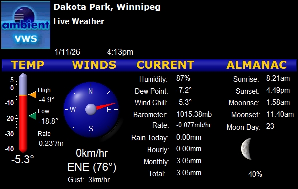 | Barometer | 1017.01mb Rate -0.902mb/hr |