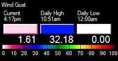 | Peak Wind Gust | 32km/hr at 10:51am | ||